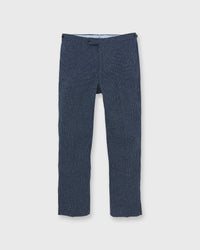 This is a more streamlined version of our classic flat-front sport trouser, still cut on the slimmer side, but with elasticized tabs at the sides instead of belt loops. (There's a trademarked term for this that rhymes with “tax” — you know the one — but the most important thing to know is that you don’t need to wear a belt. One less thing to worry about.) This pair is cut from a Portuguese jacquard with textured white yarns that create small dots throughout. A very subtle, very easy way to pull off the patterned pants thing. They've got corozo buttons, on-seam side pockets, end-on-end pocketing, a split-back waist with our signature green bartack, and a 37.5" unfinished inseam that’s ready to tailor to your perfect length.