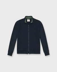 A perfectly sporty zip-up made from heavy interlock pima cotton from Peru (where they really know their stuff when it comes to knits.) We love the cheery striped ribbing at the collar.