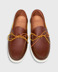 Our camp moc is somewhere between Native Americana and New England... and handsewn in Portugal? Go figure. A higher vamp and a slimmer shape make these a little more polished than your average camp moc. They've still got the traditional leather lacing and rubber sole. The harder you wear them, the better they get. (Especially sans socks.)