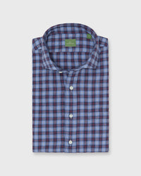 Spread Collar Sport Shirt Blue/Charcoal/Red Plaid Flannel
