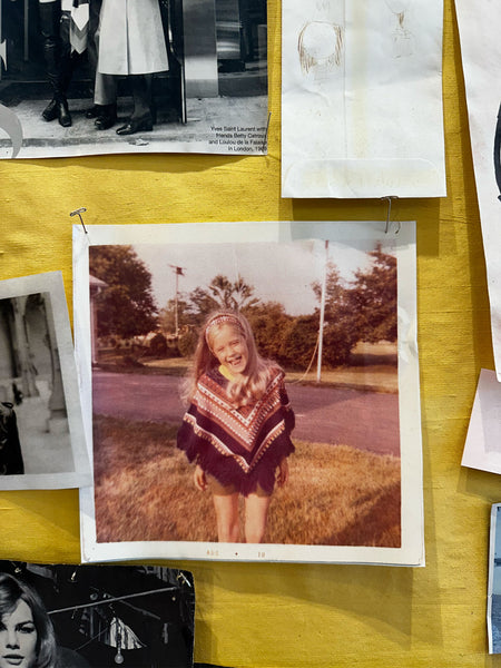 The book was published in 2000. The first iPhone photos did not happen until 2007. Try to imagine a world in which you would have been able to pinpoint that photo that made you feel a certain way. Now, my own camera roll on my phone is so crowded with junk that it’s hard to even think of one. We take so many photos and yet they all have less meaning. But if I think back to my youth, I know exactly which photo represents my own Height of Fashion. My original moodboard in the Atlanta shop has a photo of me standing in my front yard in Milwaukee on my 11th birthday. I am wearing a wool poncho, even though it’s the end of July and probably 85 degrees outside. I felt the NEED to wear this poncho with my cutoff shorts. Critically, I am also wearing a wig — a fall, in fact. (I had to look up this word to make sure I hadn’t made it up: “an older term for a half or ¾ wig, which is a hairpiece that covers only the top and crown of the head. These are designed to be worn with your own hair at the front, adding volume and length while blending seamlessly with your natural hair.”)