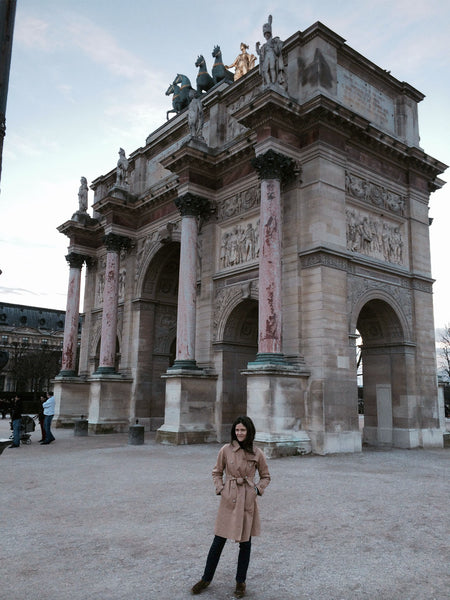 I have a photo of myself in Paris that Sid took in 2014. I am standing in front of the Arc de Triomphe wearing a Mackintosh trench coat. My caption for Lisa’s book might be: I am in Paris, wearing a trench, with my husband on the other side of the camera. It isn’t the best picture of me… but boy did I feel amazing. Not quite the poncho and the wig. But nearly. The height of fashion.